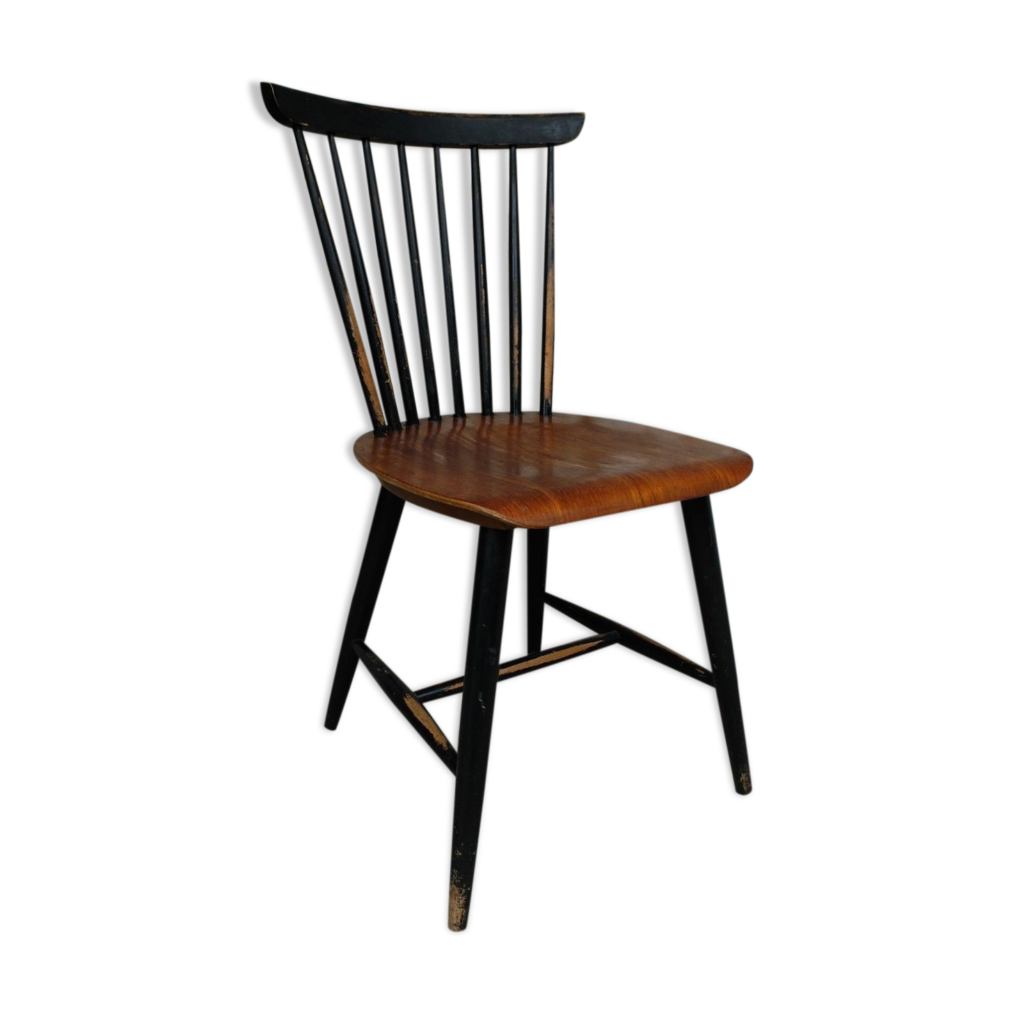 Très bel état, nouvelle peinture, touché soyeux. Wright is the premier auction house specializing in modern and contemporary design. Chaise ercol style tapiovaara noire. Marquage de l'éditeur sous l'assise en creux. 55 cm / 21.65 inch depth: